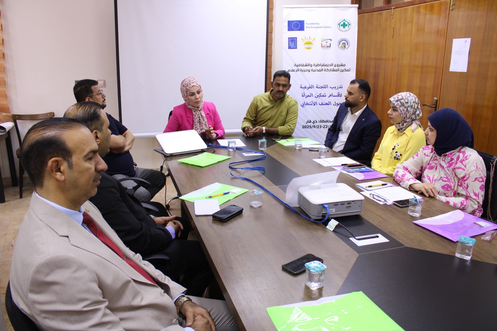 نظمت شبكة عين لمراقبة الانتخابات والديمقراطية تدريباً متخصصاً يومي 22 و23 أيلول في محافظة ذي قار، بالتعاون مع قسم تمكين المرأة في المحافظة واللجنة الفرعية لدعم مشاركة المرأة سياسياً.