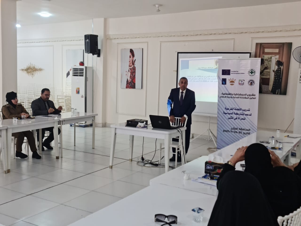 أقامت شبكة عين لمراقبة الانتخابات والديمقراطية تدريباً متخصصاً بالتعاون مع قسم تمكين المرأة، بهدف تطوير قدرات لجنة دعم المرأة سياسياً. جرى التدريب يومي 25 و26 أيلول في محافظة السماوة، وتناول عدداً من الموضوعات المهمة المتعلقة بالانتخابات المقبلة