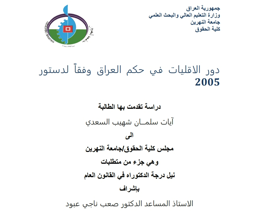 دور الاقليات في حكم العراق وفق دستور 2005 :