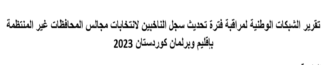 تقرير الشبكات الوطنية لمراقبة فترة تحديث سجل الناخبين لانتخابات مجالس المحافظات غير المنتظمة بإقليم وبرلمان كوردستان 2023 :