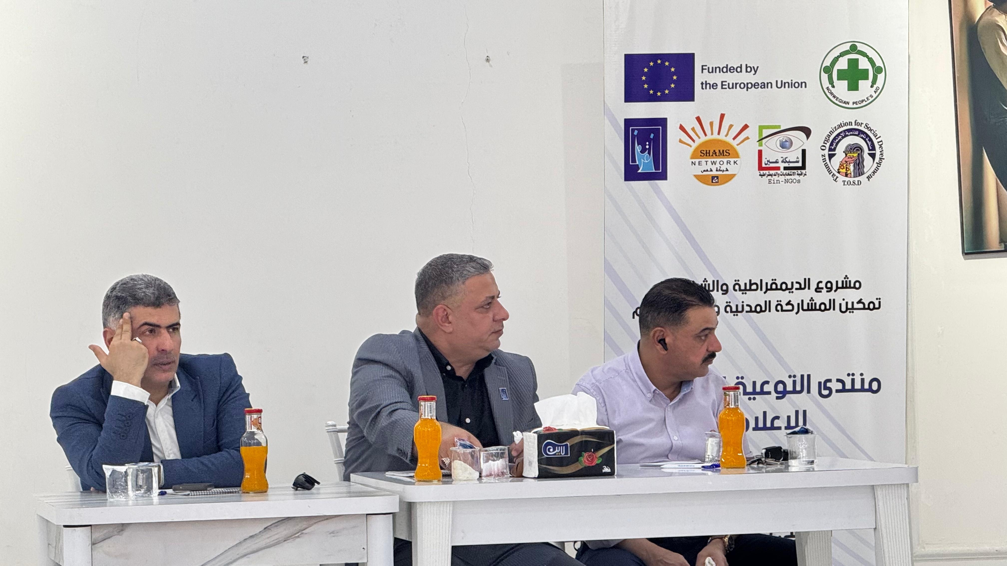 The Ein Network for Election and Democracy Monitoring organized an awareness forum for journalists in Samawah Governorate on August 23. This forum is part of the project "Democracy and Transparency